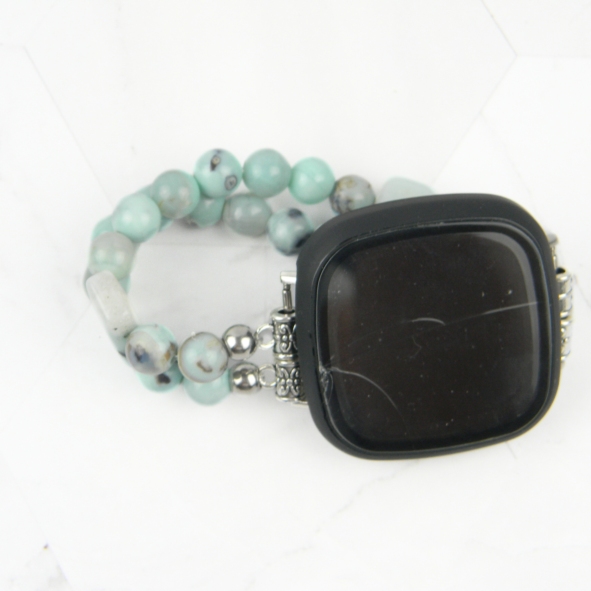 Enameled Agate & Amazonite Bracelet Watch Band for Fitbit Versa 2, Versa 3 & 4 Smartwatch