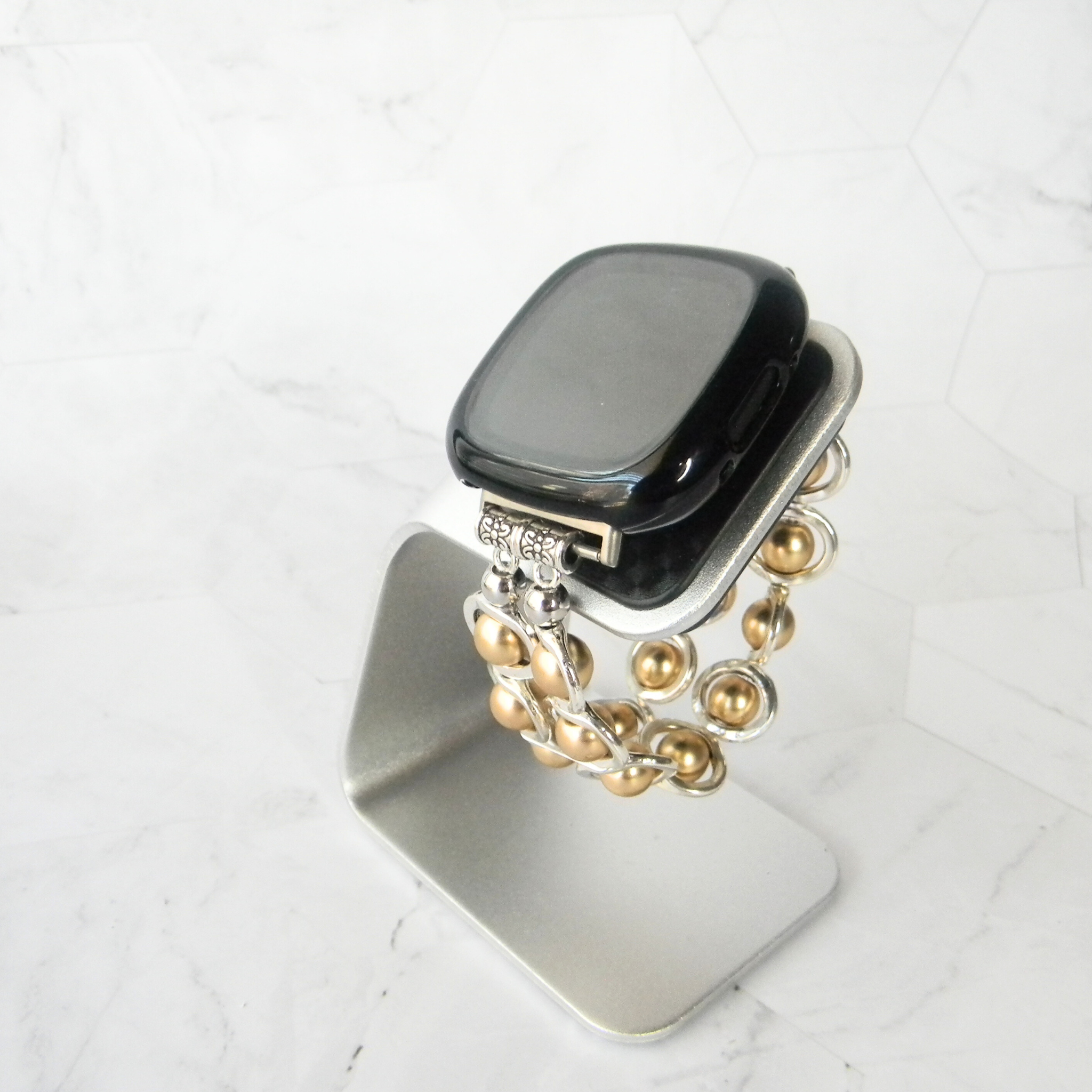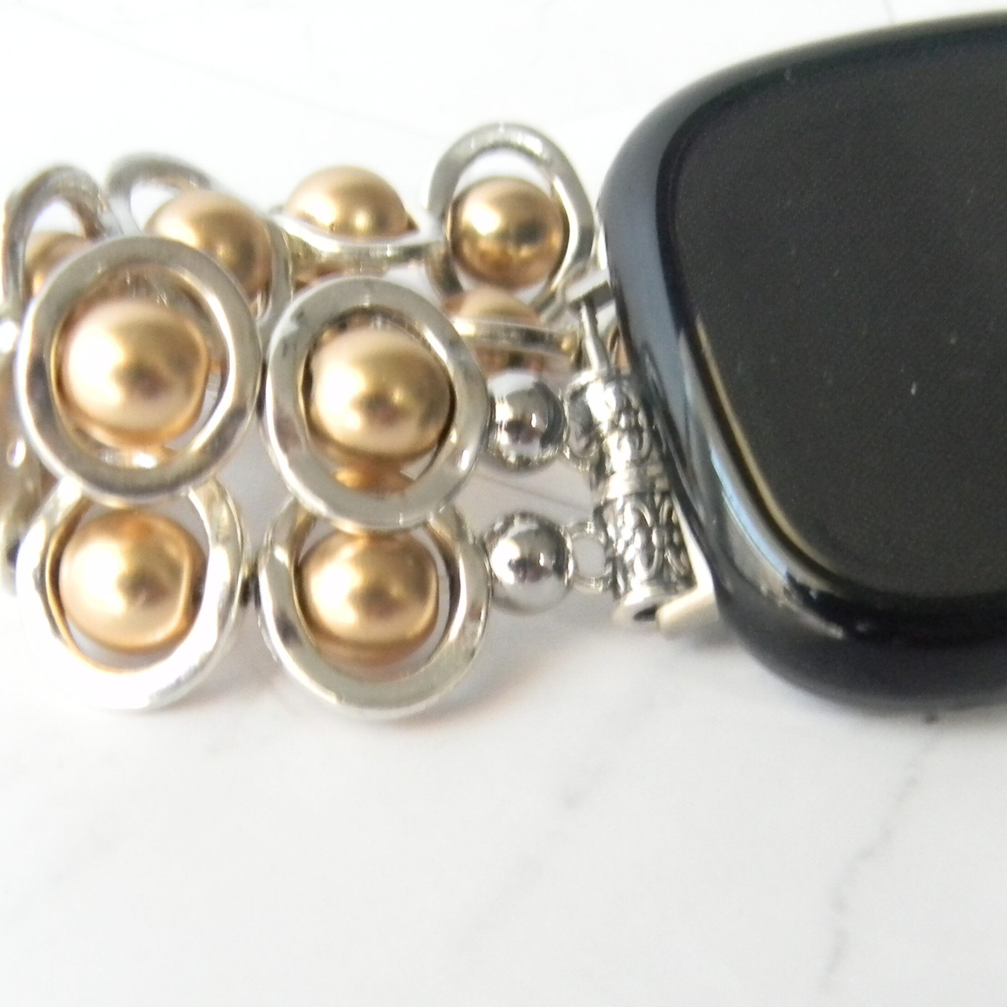 Watch Bands for Fitbit Watch - Silver Ovals and Gold Beads