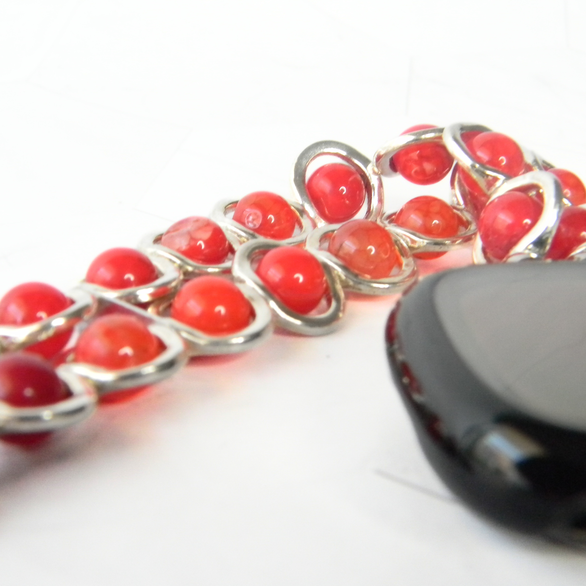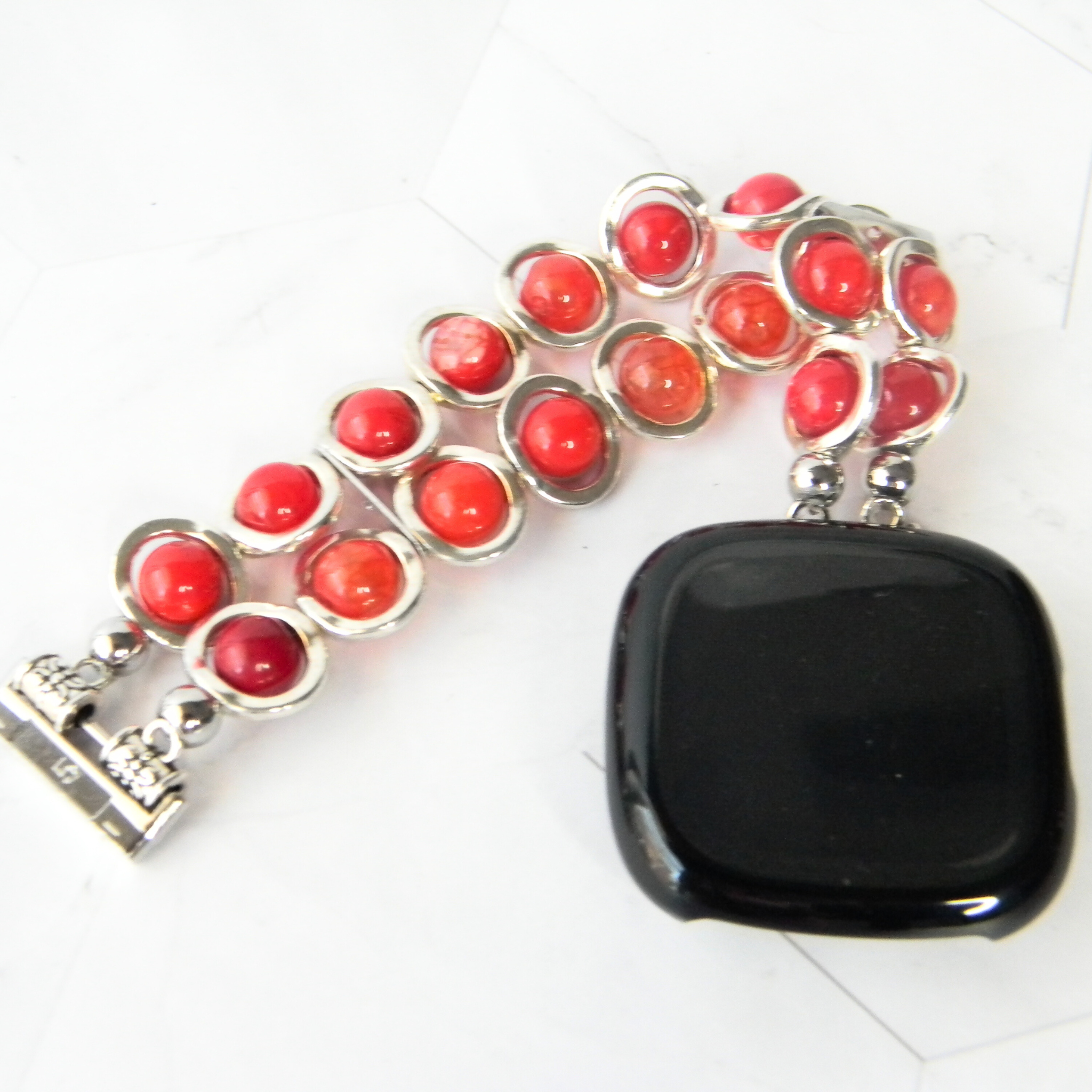 Watch Bands for Fitbit Watch - Silver Ovals and Fire Red Beads